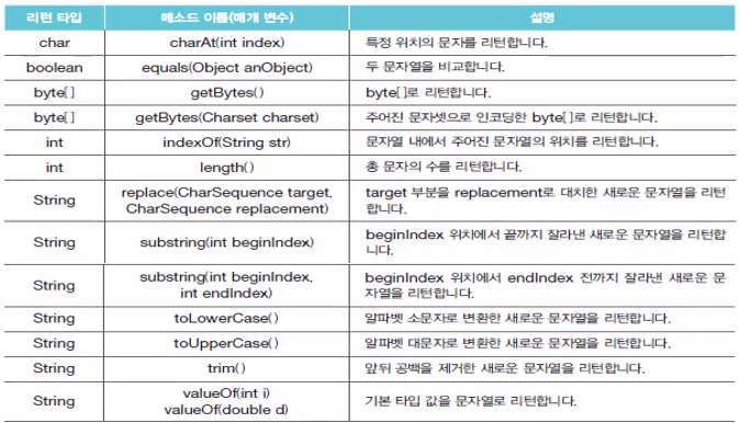 - λ¬Έμμ΄μ μΆμΆ, λΉκ΅, μ°ΎκΈ°, λΆλ¦¬, λ³ν λ±κ³Ό κ°μ λ€μν λ©μλλ₯Ό κ°μ§κ³ μλ€.