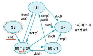 - μ€λ λ κ°μ²΄λ₯Ό μμ±νκ³ start() λ©μλλ₯Ό νΈμΆνλ©΄ λ°λ‘ μ€νλλ κ²μ΄ μλλΌ μ€ν λκΈ° μνκ° λλ€.