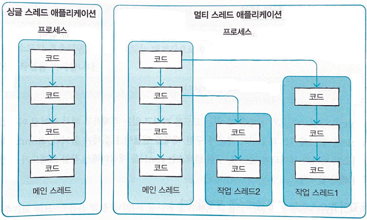 λ©μΈ μ€λ λλ νμμ λ°λΌ μμ μ€λ λλ€μ λ§λ€μ΄ λ³λ ¬λ‘ μ½λλ₯Ό μ€νν μ μλ€. μ¦, λ©ν° μ€λ λλ‘ λ©ν° νμ€νΉμ μνν μ μλ€. λ©ν° μ€λ λ μ ν리μΌμ΄μ μμλ μ€ν μ€μΈ μ€λ λκ° νλλΌλ μλ€λ©΄ νλ‘μΈμ€λ μ’ λ£λμ§ μλλ€.