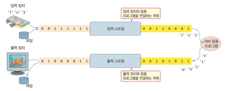 ์๋ฐ์์ ๋ฐ์ดํฐ๋ ์คํธ๋ฆผ์ ํตํด ์ ์ถ๋ ฅ๋๋ค. ์คํธ๋ฆผ์ ๋จ์ผ ๋ฐฉํฅ์ผ๋ก ์ฐ์์ ์ผ๋ก ํ๋ฌ๊ฐ๋ ๊ฒ์ ๋งํ๋๋ฐ ๋ฌผ์ด ๋์ ๊ณณ์์ ๋ฎ์ ๊ณณ์ผ๋ก ํ๋ฅด๋ฏ์ด ๋ฐ์ดํฐ๋ ์ถ๋ฐ์ง์์ ๋์ฐฉ์ง๋ก ํ๋ฌ๊ฐ๋ค.