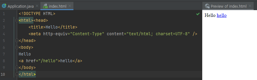 return "hello"; // λ¬Έμμ΄ κ°μ λ§λ htmlμ μ°Ύμ νλ©΄μ 보μ¬μ€λ€.