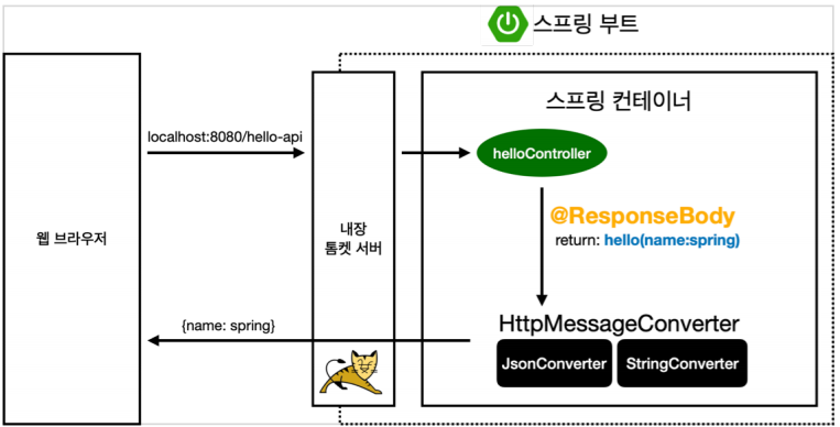 - viewResolver๋ฅผ ์ฌ์ฉํ์ง ์๊ณ HTTP์ ์๋ต body์ ๋ฐ์ดํฐ๋ฅผ ์ง์ ๋ฐํํ ๊ฒ์ด๋ค. (@ResponseBody)