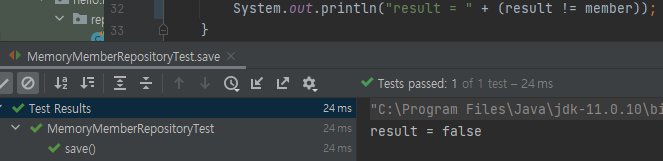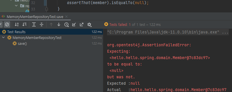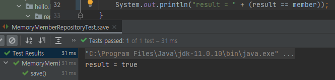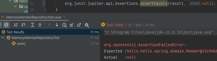 - Assertions.assertThat(member).isEqualTo(result); ๋๋ assertThat(member).isEqualTo(result); (static)