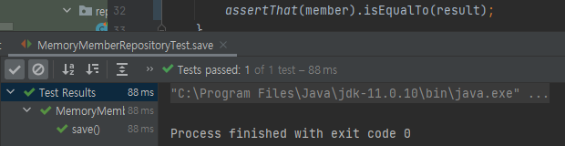 - Assertions.assertThat(member).isEqualTo(result); ๋๋ assertThat(member).isEqualTo(result); (static)