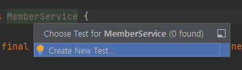 Ctrl + Shift + T λλ₯Έ ν ν μ€νΈν Member νλͺ© μ ννκ³ Ok νλ©΄ ν¨ν€μ§, ν μ€νΈ Class λͺ¨λ μλμΌλ‘ μμ±λλ€.