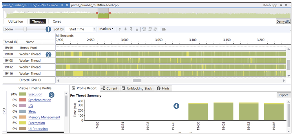- ๋๋ฒ๊ฑฐ ์์ด ํ๋ก๊ทธ๋จ ์คํ ํ Analyze > Concurrency Visualizer > Attach to Process ๋ก ๋ถ์์ ์์ํ๋ค.