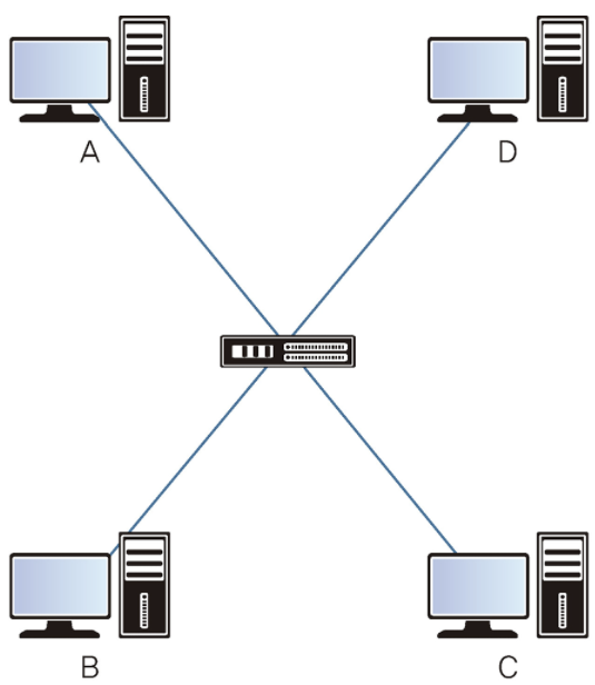 - ๋ฐ์ดํฐ๋ฅผ ์ฃผ๊ณ ๋ฐ์ ๋ ๋จ๋ง๊ธฐ์์ ๊ฐ์ด๋ฐ์ ์๋ ์ค์์น๋ก ๋ฐ์ดํฐ๋ฅผ ์ ๋ฌํ๊ณ ์ค์์น๋ ๋ค๋ฅธ ๋จ๋ง๊ธฐ๋ก ๋ณด๋ธ๋ค.