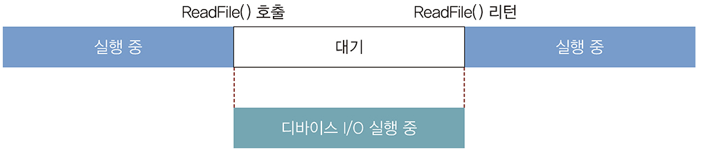 λΈλ‘νΉμ΄ λ°μν μ€λ λμμλ CPU μ°μ°μ νμ§ μλλ€. μ¦, μ€λ λλ waitable stateμΈ μνμ΄λ€. μ΄ μνμΌ λ νμΌμ΄λ μμΌμ μ€μ μ²λ¦¬λ λλ°μ΄μ€μμ νλ€. μμ μ΄ λλλ©΄ μνλ λ€μ running μνλ‘ λ°λλ€.