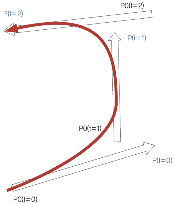 - ์บ๋ฆญํฐ์ ์ด๋ ์ ๋ณด๋ฅผ ๋ฐ๋ ์ชฝ(์ฌ๋ณธ์ด ์๋ ์ชฝ, ์ ์ชฝ)์ P๋ผ ํ๋ฉฐ P(t)๋ ์๊ฐ t์์ ์ฌ๋ณธ ์์น์ด๋ค.