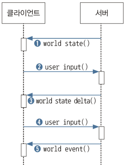 - ์ฆ, ๊ฐ ํด๋ผ์ด์ธํธ ํ๋ ์ด์ด์ ์ ๋ ฅ ๋ช ๋ น๋ง ์ฃผ๊ณ ๋ฐ์ผ๋ฉฐ ์ฌ์ ๊ตฌ์ฑํ๋ ์บ๋ฆญํฐ์ ์ด๋ ์ํ๋ฅผ ์ฃผ๊ณ ๋ฐ์ง๋ ์๋๋ค.