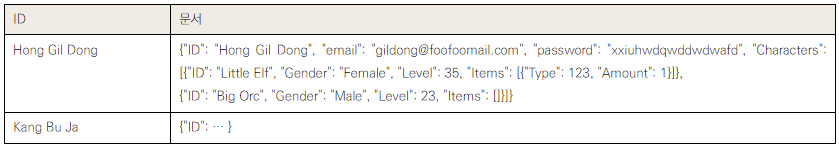 GameDB๋ผ๋ ๋ฐ์ดํฐ๋ฒ ์ด์ค ์ธ์คํด์ค๊ฐ ์๊ณ ๊ทธ ์์๋ UserAccount๋ผ๋ ํ ์ด๋ธ์ด ์๋ค. ๊ทธ๋ฆฌ๊ณ ๊ทธ ํ ์ด๋ธ ์์๋ john, prada์ ๋ํ ๋ ์ฝ๋๊ฐ ์์ผ๋ฉฐ ์ด๋ฉ์ผ, ํจ์ค์๋, ์๋ ์์ผ์ด๋ผ๋ ํ๋๊ฐ ์๋ค. ์ฆ, ์ด ํ ์ด๋ธ์ ํ๋ ์ด์ด ์ ๋ณด๋ฅผ ์ ์ฅํ๋ ์ฉ๋์ด๋ค