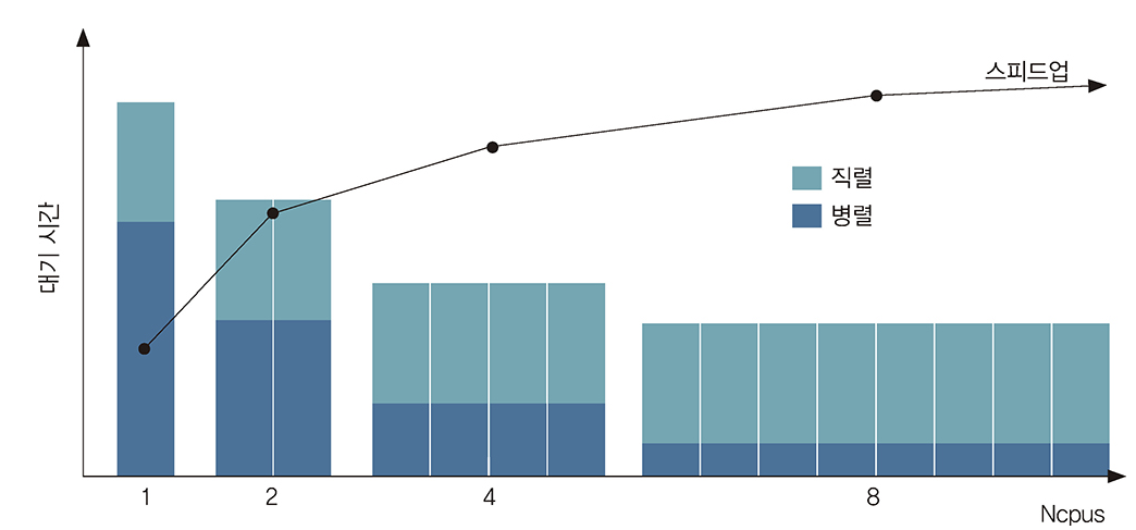 ์ด์ฒ๋ผ ๋ณ๋ ฌ ์ฒ๋ฆฌํ ์ ์๋ ์ฅ์น์์ ๋ณ๋ ฌ๋ก ์ฒ๋ฆฌํ์ง ๋ชปํ๋ ์๊ฐ์ ๋น๋กํ์ฌ ๋ณ๋ ฌ ํจ๊ณผ๊ฐ ๊ธ๊ฐํ๋ ํ์์ ์๋ฌ์ ๋ฒ์น์ด๋ผ ํ๋ค. ๋ฐ๋ผ์ ๋๊ธฐ ๋ถ์ฐ ์ฒ๋ฆฌ์ ์๋ชป๋ ์ฌ์ฉ์ ๋ถ์ฐ ์๋ฒ์ ํจ๊ณผ๋ฅผ ๋จ์ด๋จ๋ฆด ์ ์๋ค.
