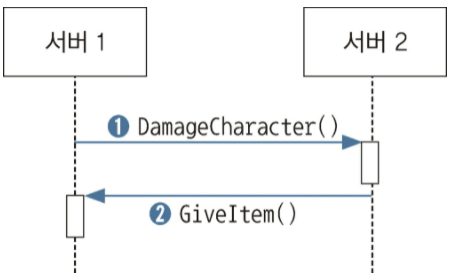 - ์๋ฒ 2๋ ์๋ฒ 1์ ํ๋ ์ด์ด์๊ฒ ์์ดํ ์ ์ฃผ์๋ค๊ณ ํต๋ณดํ๋ค.
