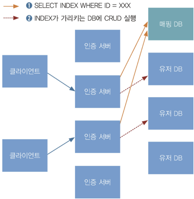 ์ธ์ฆ ์๋ฒ๋ ๋ถํ๊ฐ ๋ถ์ฐ๋๋ ๋ฐ์ดํฐ๋ฒ ์ด์ค ์๋ฒ์์๋ ์ฌ์ ํ ๊ณผ๋ถํ๊ฐ ๋ชฐ๋ฆฌ๊ณ ์๋ค. ์ด๋ ํ๋ ์ด์ด ๊ฐ ์ํธ ์์ฉ์ด ์๋ค๋ฉด ๋ฐ์ดํฐ๋ฒ ์ด์ค์ ์ํ ํ์ฅ์ ์ฝ๋ค. ํ๋ ์ด์ด ์ ๋ณด๋ฅผ ์๋ก ๋ค๋ฅธ ๋ฐ์ดํฐ๋ฒ ์ด์ค ์ค๋์ ๊ณจ๊ณ ๋ฃจ ๋๋์ด ์ ์ฅํ๋ฉด ๋๋ค.