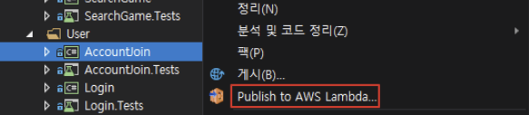 ์ค์น๊ฐ ์๋ฃ๋๋ฉด ์คํฌ๋ฆฝํธ๋ฅผ ์ค๋ฅธ์ชฝ ํด๋ฆญํ์ฌ Publish to AWS Lambda๋ฅผ ์ ํํ์ฌ ํจ์๋ฅผ ์ ๋ก๋ํ๋ฉด ๋๋ค.