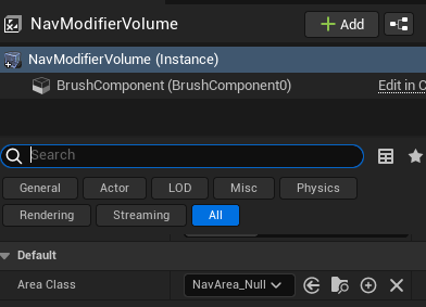 NavModifierVolume์ ๋ฐฐ์นํ ํ NavArea_Null๋ก ์ค์ ํ๋ค. MinRegionArea๋ก ํด๊ฒฐ๋์ง ์์ ์์ญ์ NavModifierVolume์ผ๋ก ์ ๊ฑฐํ๋ฉด ๋๋ค.