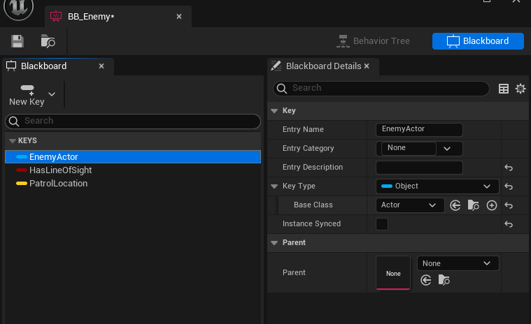 GetBlackboardComponent()->SetValueAsObject("EnemyActor", Actor);