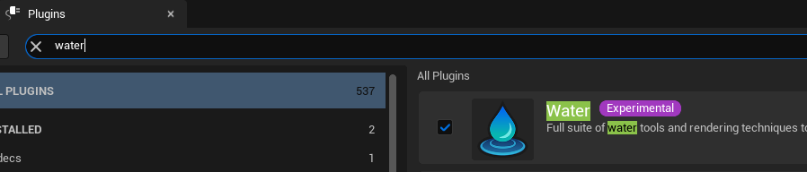 ๋จผ์ Water ํ๋ฌ๊ทธ์ธ์ ์ฌ์ฉํ๊ธฐ ์ํด ํ๋ฌ๊ทธ์ธ ์ฐฝ์์ Water๋ฅผ ํ์ฑํ์ํจ๋ค.