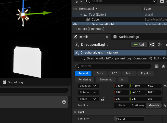 - Directional Light Actor: ์์ฑํ Directional Light