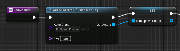 UGameplayStatics::GetAllActorsOfClassWithTag(GetWorld(), ASpawnPoint::StaticClass(), "Item", FoundActors);