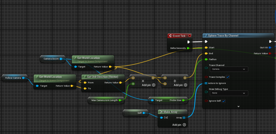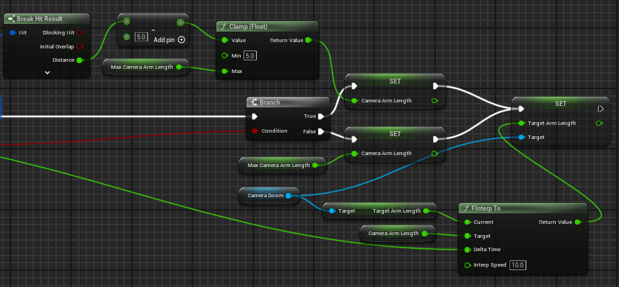 CameraArmLength = UKismetMathLibrary::Clamp(OutCameraHit.Distance - CameraBoom->ProbeSize, 30, MaxCameraArmLength);
