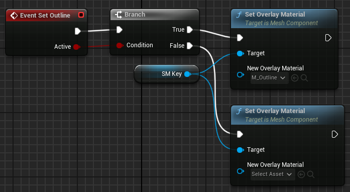 Overlay Material은 기존 액터에 설정된 Material에 추가로 블렌드 하기 위한 Material이다. 외곽선, 빛 등 여러 여러 효과를 넣을 수 있다.
