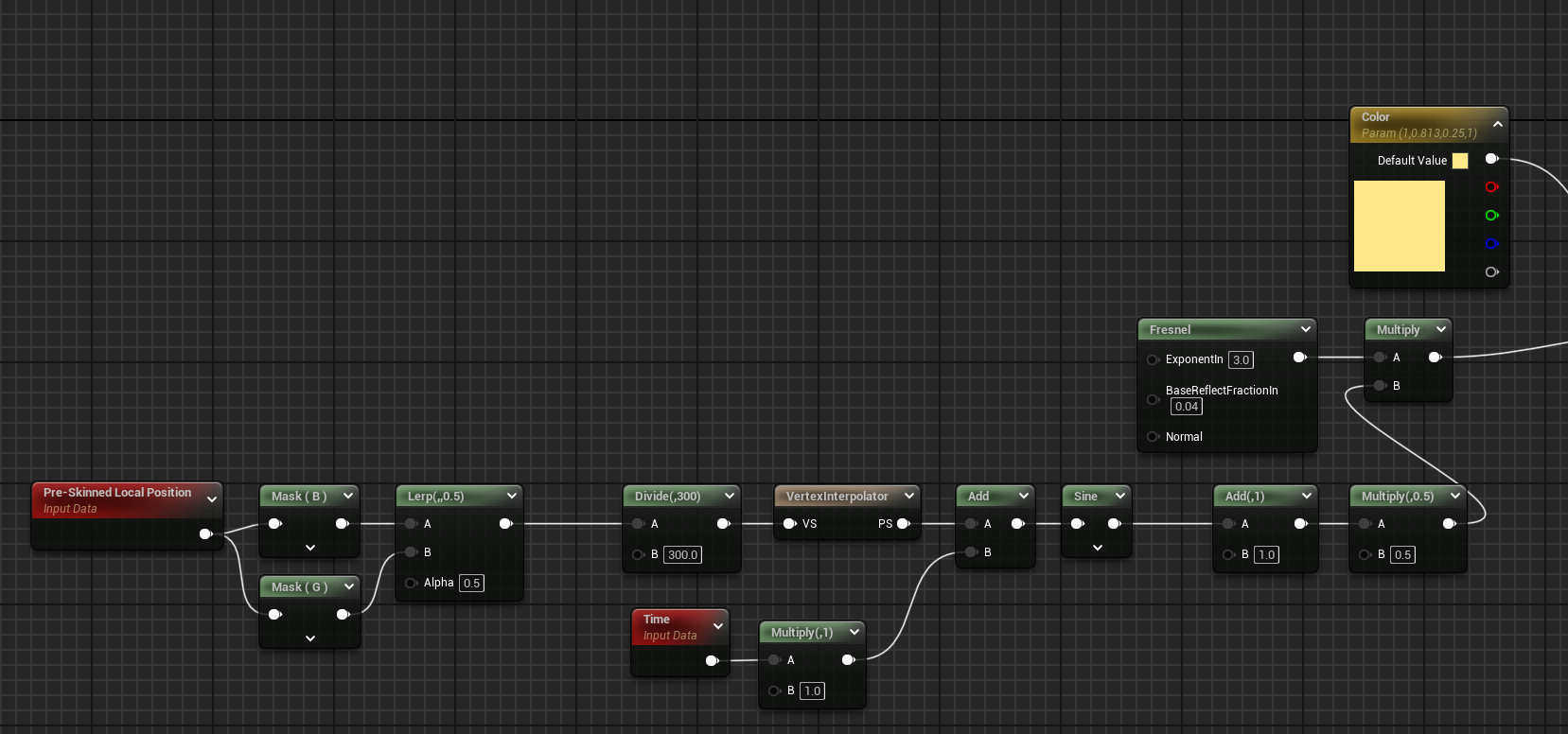 M_Outline 머터리얼은 위에서 아래로 빛을 내며 Highlight 되는 머터리얼이다.