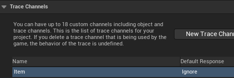 먼저 특정 액터만 탐지하기 위해 Trace 채널을 하나 생성한 후, 그 특정 액터에서 생성한 Trace Responses를 Block으로 변경한다.