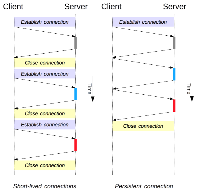 HTTP/1.0μ λ¬λ¦¬ HTTP/1.1μ μ§μ 컀λ₯μ μ Defaultλ‘ νμ±νλμ΄ μλ€. κ·Έλμ HTTP/1.1μμλ λ³λ μ€μ μ νμ§ μλ ν λͺ¨λ 컀λ₯μ μ μ§μ 컀λ₯μ μΌλ‘ μ·¨κΈνλ€.